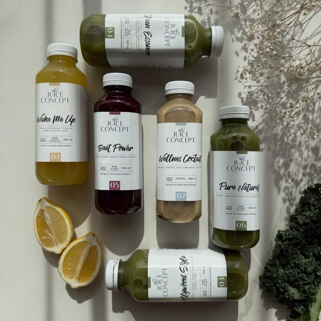 • PURE BEAUTY jarmuż, jabłko, korzeń selera, cytryna,